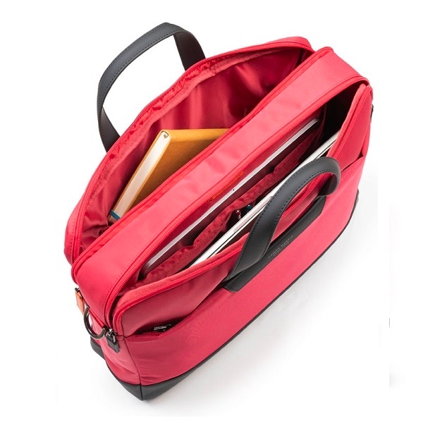 新款筆電側揹包採用環保尼龍材質,展現品牌對地球永續的尊重。內層附有專屬的13吋筆電軟墊夾層,可容納A4文件。另外內層有2 個筆袋和4個小口袋,1個扁平大口袋、1個拉鍊大口袋。正面與背面均配有一個拉鍊口袋。背面口袋同時也是行李環帶,可套入行李把手上,出差時可解放您的雙手更加方便。附可拆式長揹帶,手提側揹都適用。無論是上班、通勤、出差都是您日常工作的絕佳好夥伴。