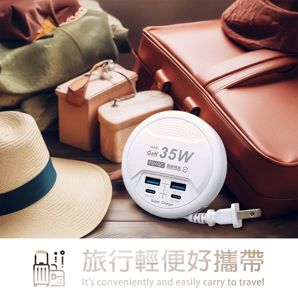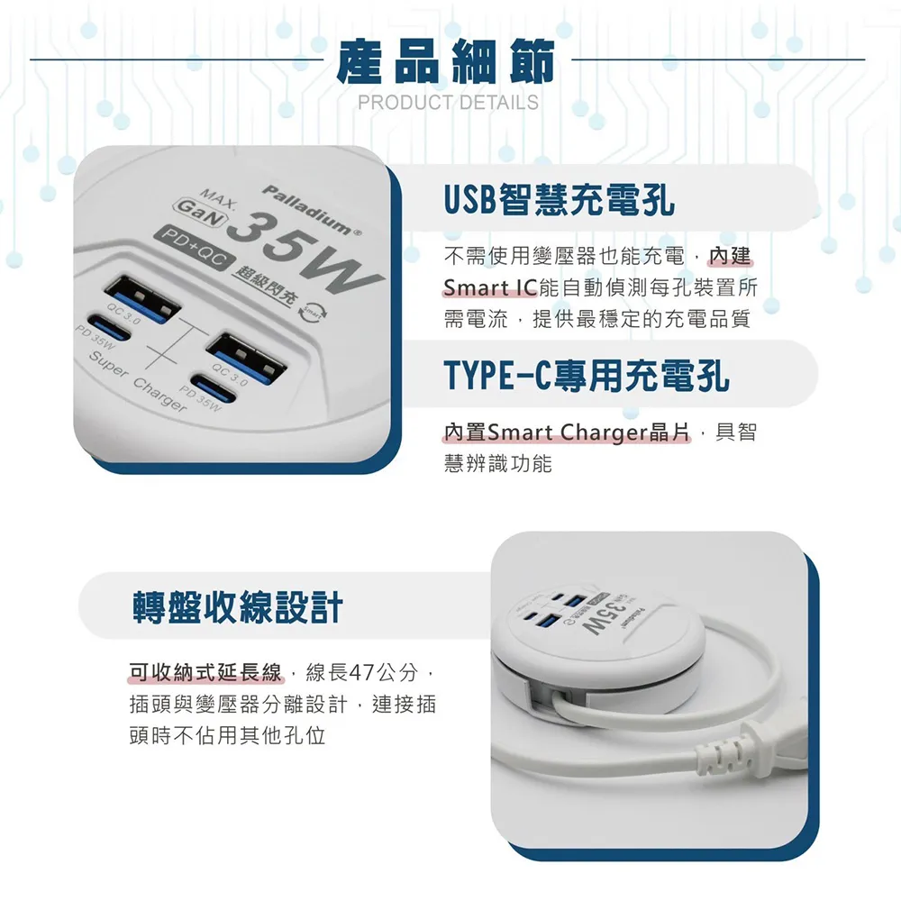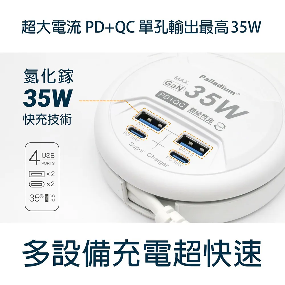 Palladium 帕拉丁 PD 35W 4port USB快充電源供應器(圓形) UB-26 公司貨 黑色