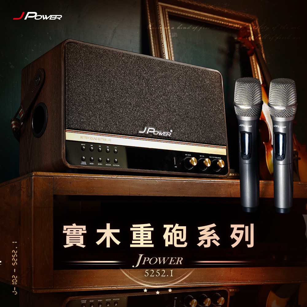 JPOWER 震天雷5252.1 實木重砲版 肩攜式無線藍牙音響(含無線雙麥)