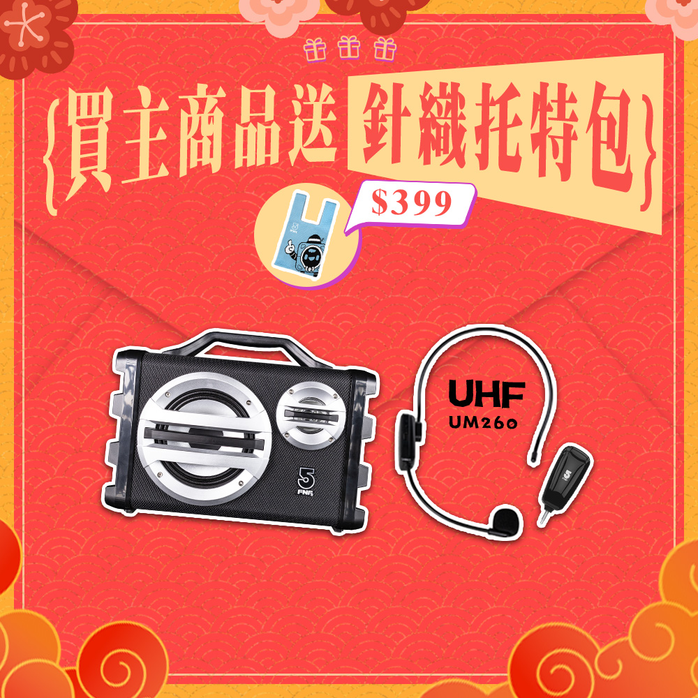 UM260:主體、接收器、TYPE-C充電線、麥克風海綿套、L型3.5轉6.3mm轉接頭、專屬收納袋、使用說明、頭箍