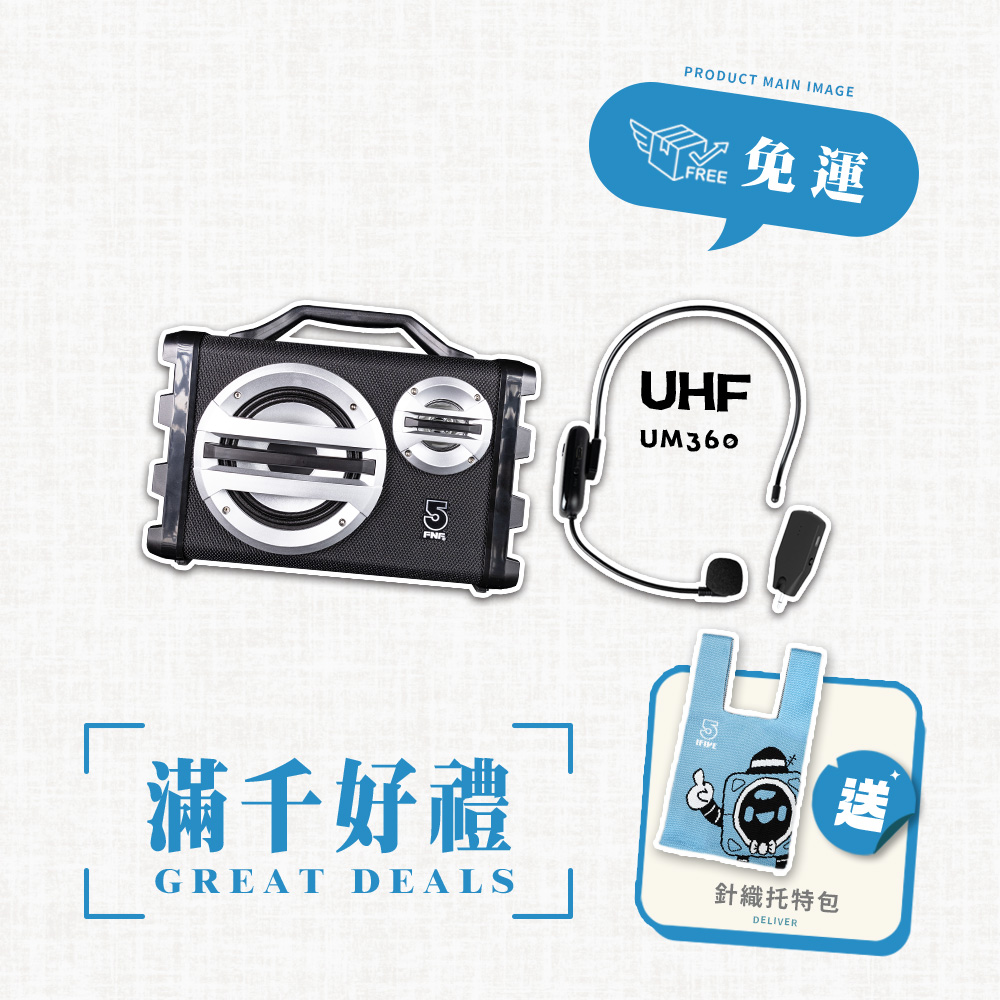 UM360:主體、接收器、USB充電線、3款樂器專用夾、麥克風海綿套、使用說明書