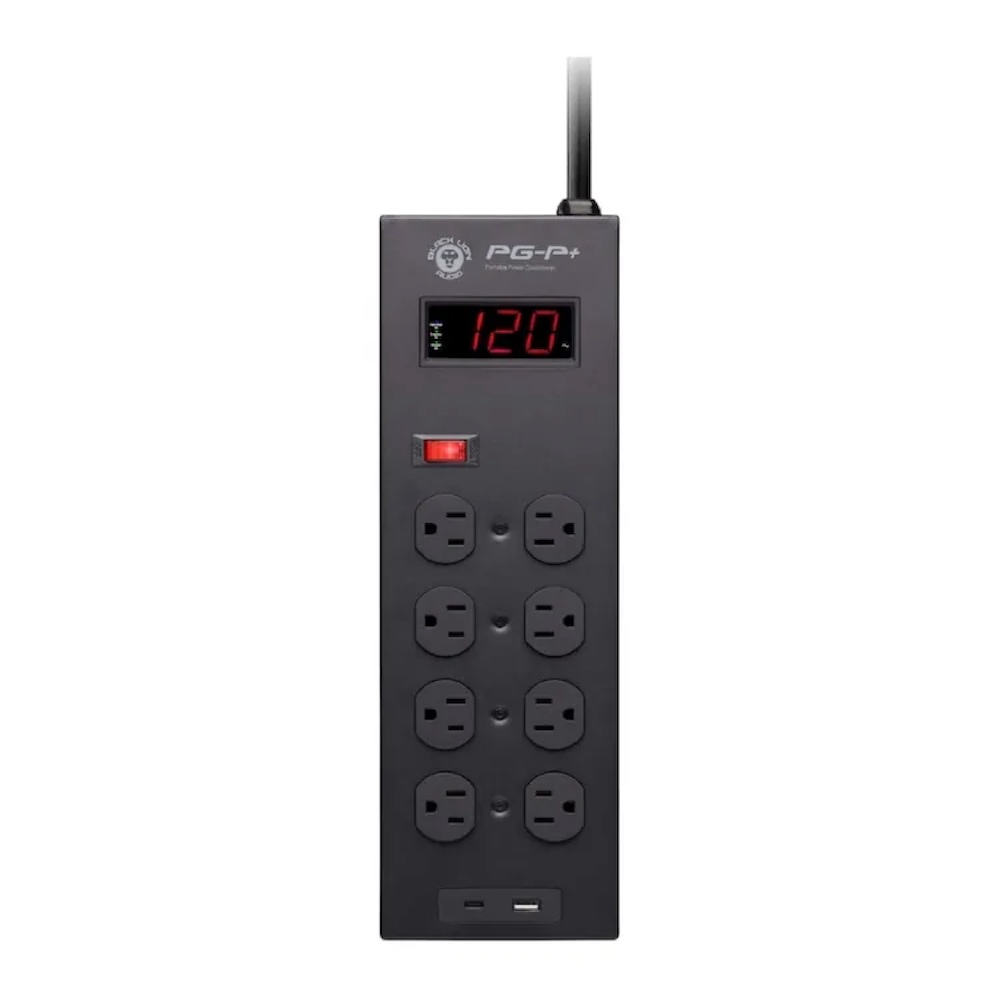 乍看之下,PG-P Plus 可能像是一個堅固的突波保護裝置,但實際上它是一款錄音室級的電源調節器。PG-P Plus 不僅提供比其他便攜式調節器更多的噪聲過濾功能,還提供與更昂貴的機架式電源調節器相同的錄音室級別噪聲過濾!八個插座提供錄音室級的電力,即使是表演中的音樂設備也能獲得最佳供電保障。