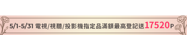 電視/視聽/投影機指定品單筆滿4000元送8%P幣,最高320P幣