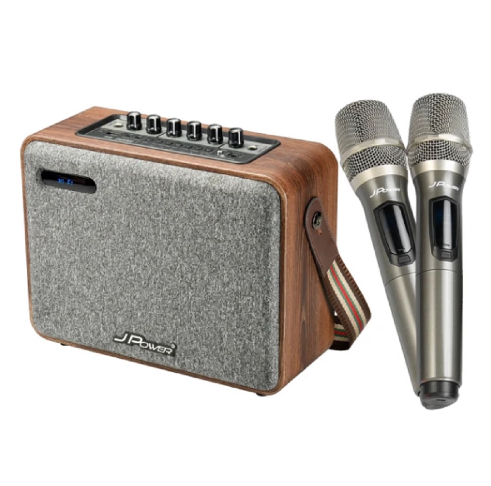 6.5吋實木音箱x1、手握麥克風x2、充電鋰電池x2、充電線x2、防滾套X2、防風套x2、收納包x1
