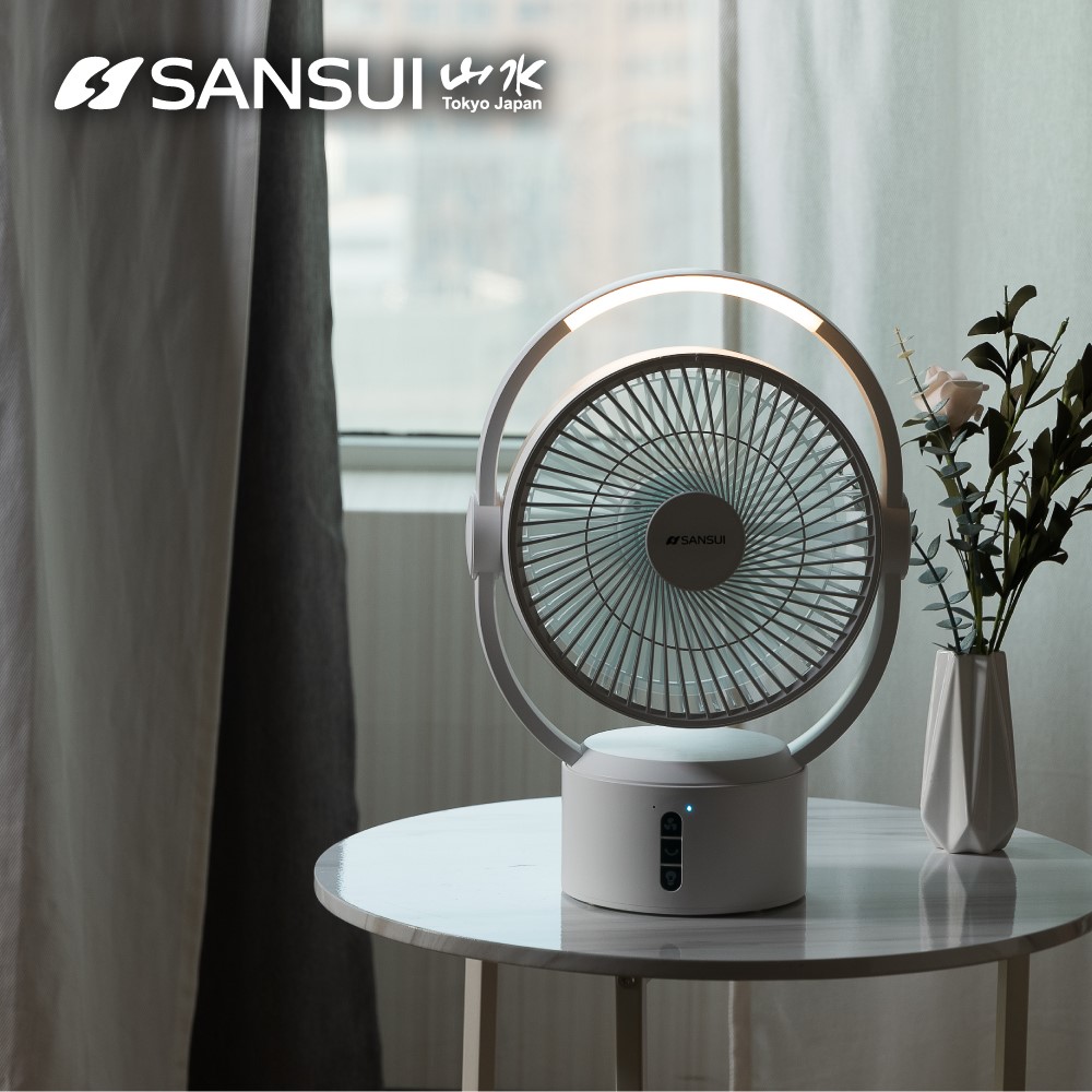 SANSUI 山水 9吋美型智慧驅蚊循環DC扇 充電式風扇 SDF-0915(白綠色/戶外/露營/不怕停電/靜音)