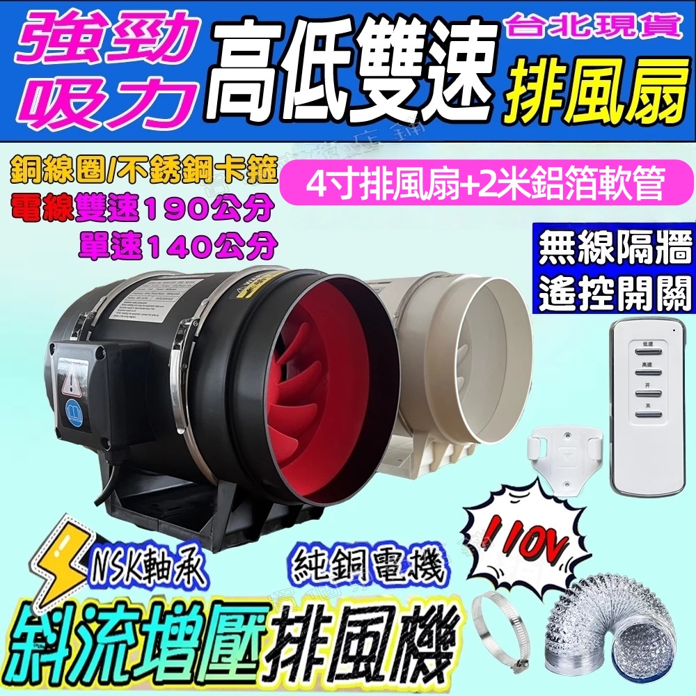 【一本店鋪】遙控高低速 4寸排風扇+2公尺伸縮管送一卡箍 (排風扇 排風機 排煙機 換氣扇 抽風機 風扇)
