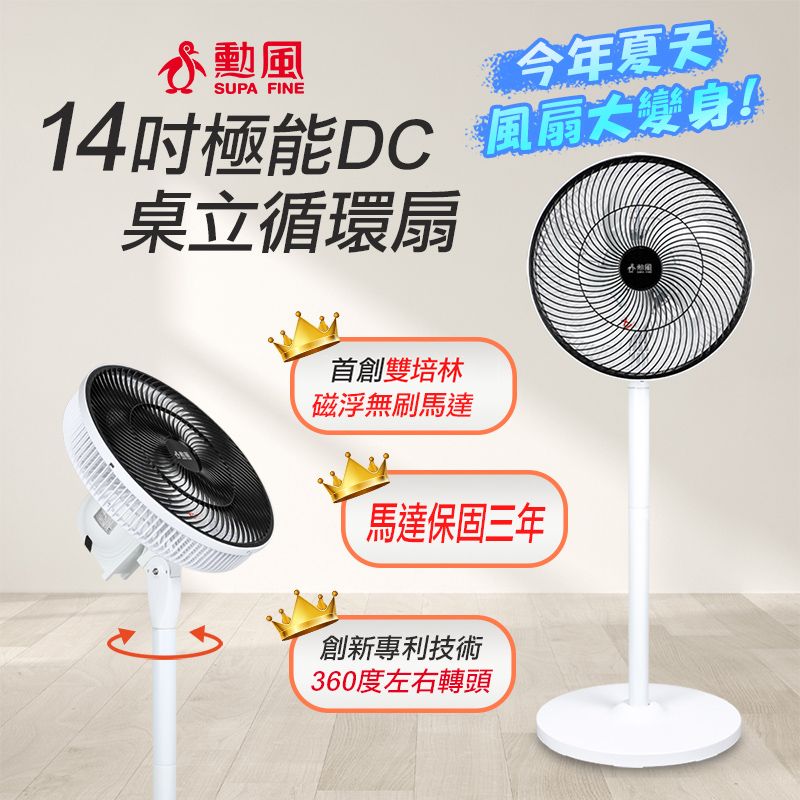 SUPA FINE 勳風 14吋DC全方位桌立循環扇/USB風扇 BHF-S0029