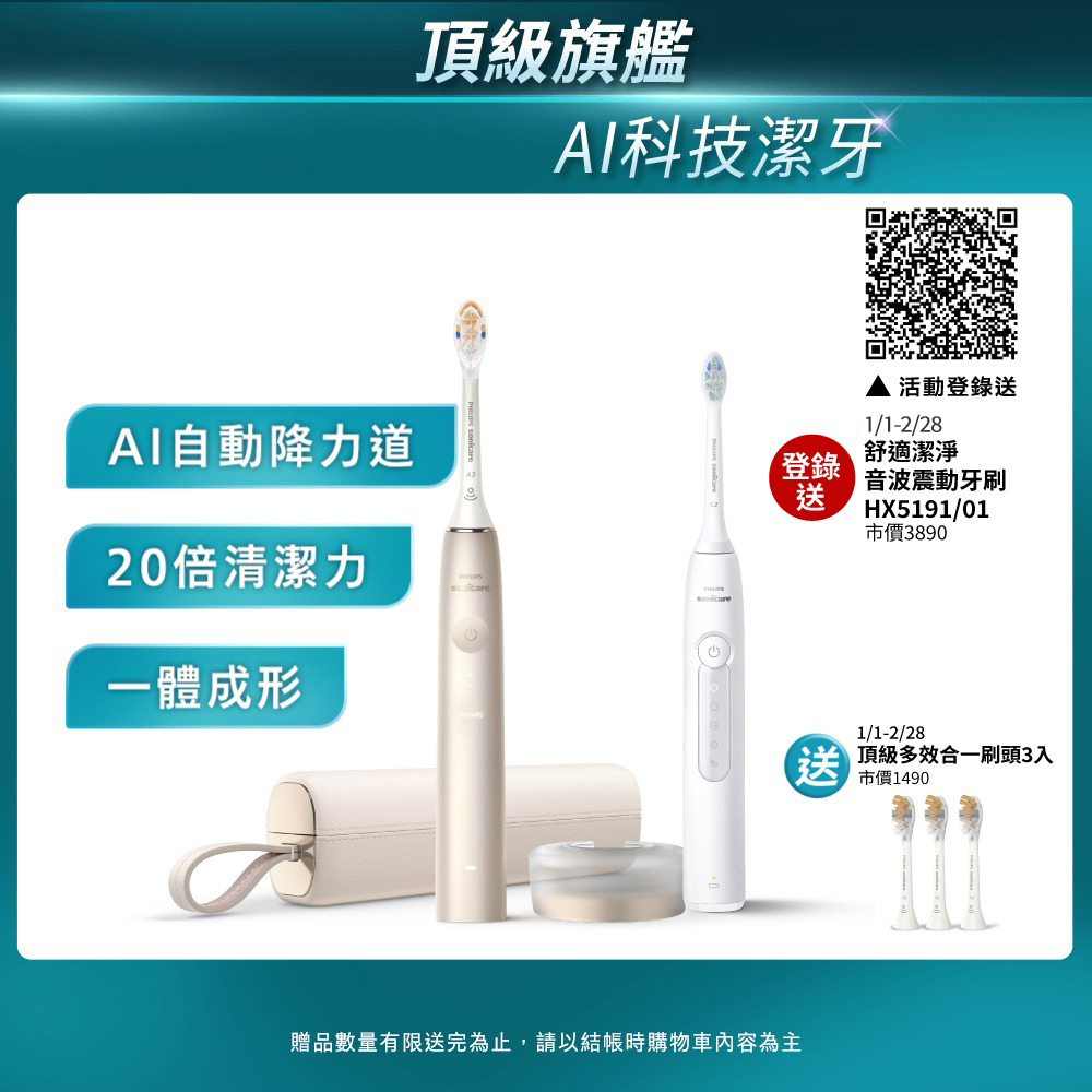 。配件:牙刷主機*1 、頂級多效合一刷頭*1 、Type C皮革旅行充電盒 *1 、無線充電座*1 、說明書 *1 、保證書×1
