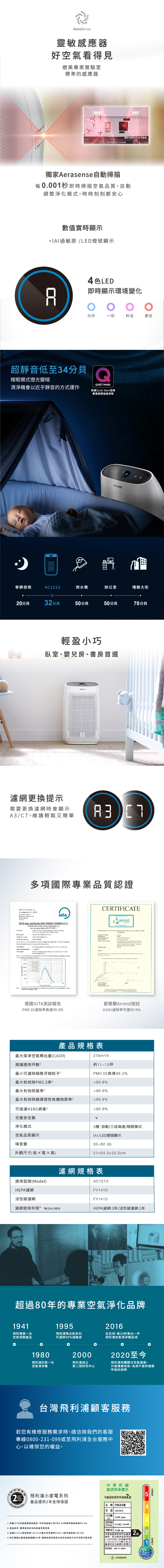 PHILIPS 飛利浦 舒眠抗敏空氣清淨機AC1213