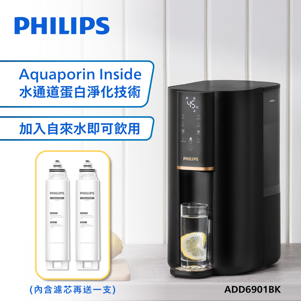 PHILIPS飛利浦 新一代超長效過濾智能雙效UV-C滅菌/RO瞬熱濾淨飲水機ADD6901BK(主機內含濾芯)