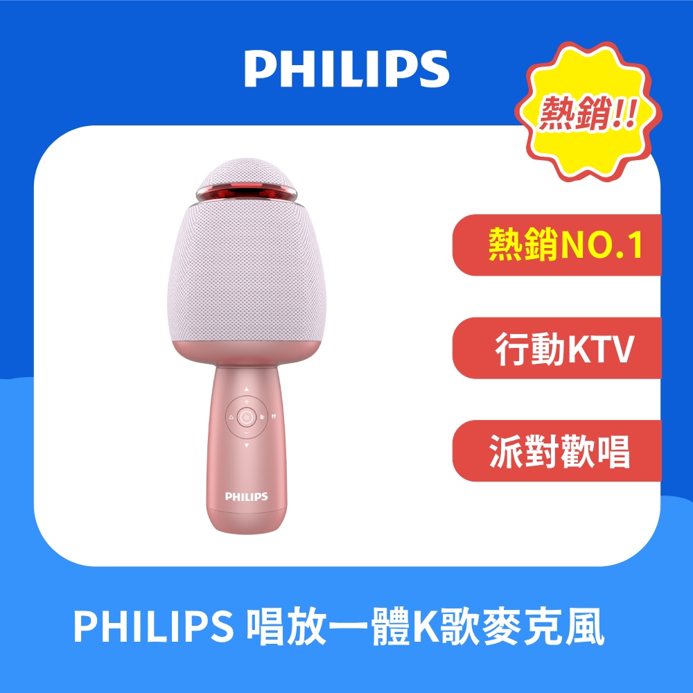 PHILIPS飛利浦 唱放一體K歌麥克風-粉 DLM9318CP/96
