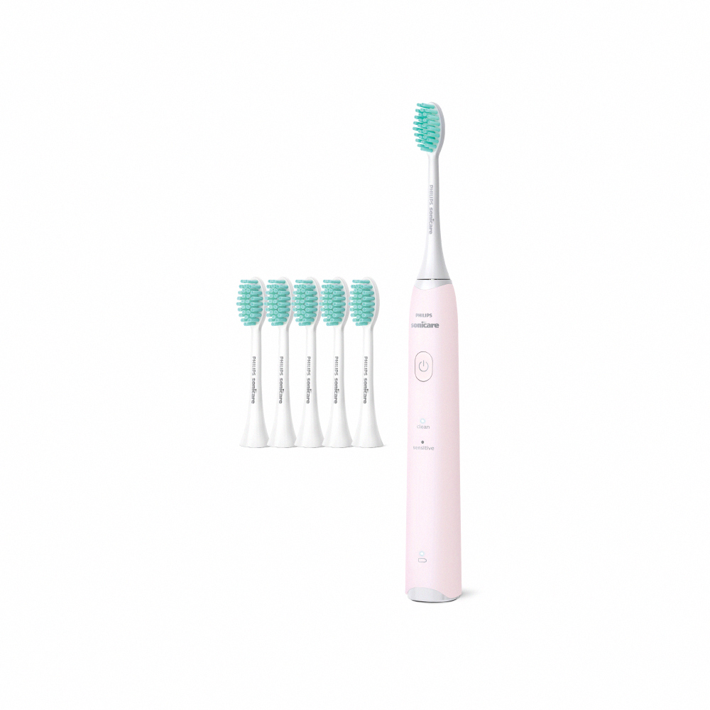PHILIPS 飛利浦 官方直營 輕巧軟毛音波震動牙刷-柔霧粉HX2421/04+專用溫和清潔刷頭*五支(隨貨附贈) 電動牙刷 小羽刷