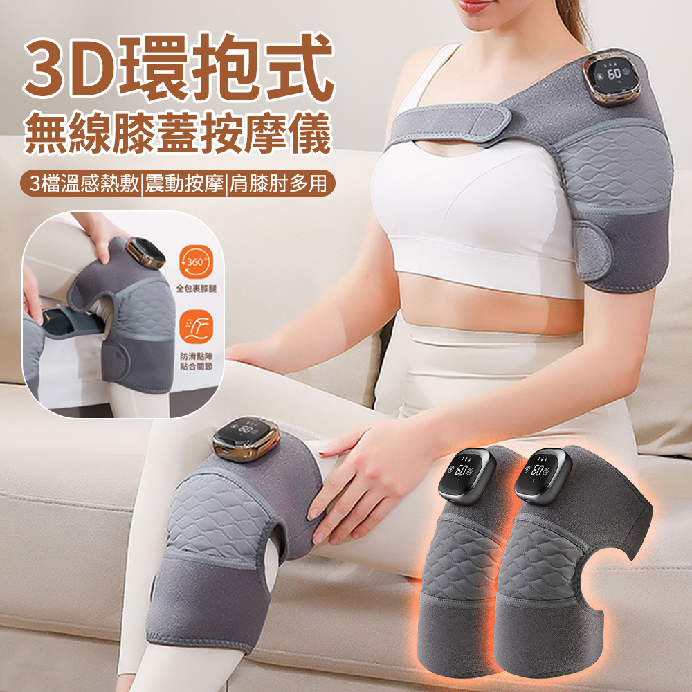 Lew 3D環抱式膝蓋按摩儀 多功能發熱護膝 加熱保暖護膝套 單只 (膝蓋/肩/手肘通用)