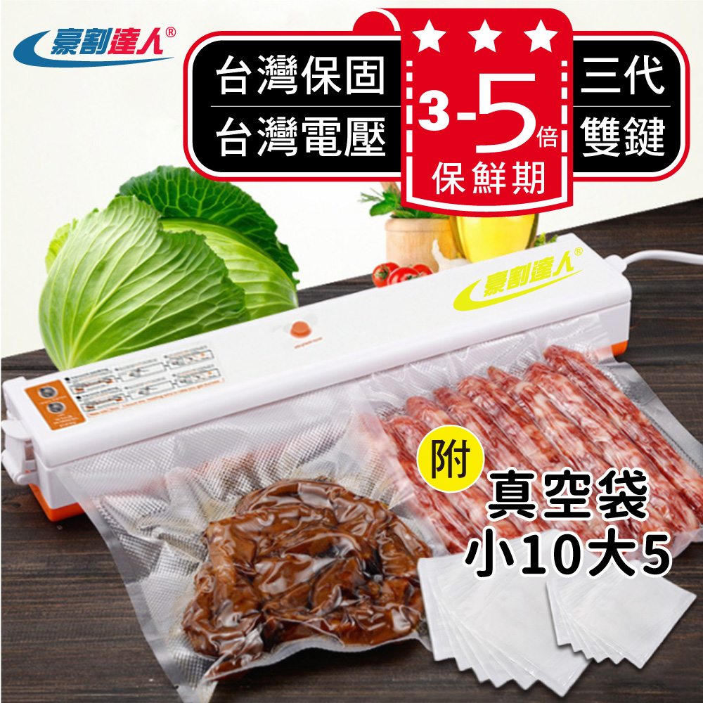 三代特惠1組內含:真空包裝機x1 + SGS食物保鮮真空包裝真空袋(20*25cm*10)+(25*30cm*5)共15入