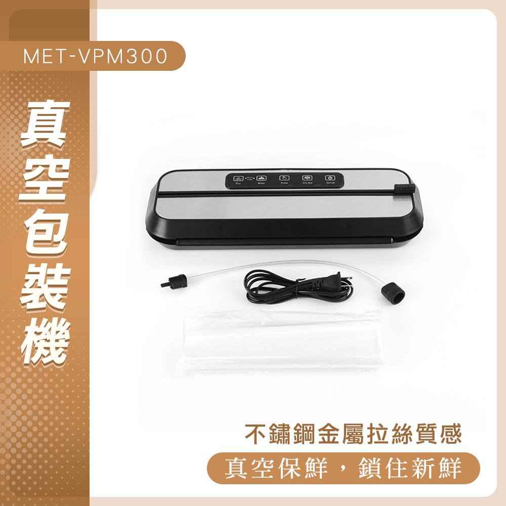 - 真空封存不只是延長保鮮,是為生活加分的質感選擇!MET-VPM300 真空包裝機,採用雙泵大吸力設計,無論是乾貨、濕食、粉末、軟料,全都輕鬆密封