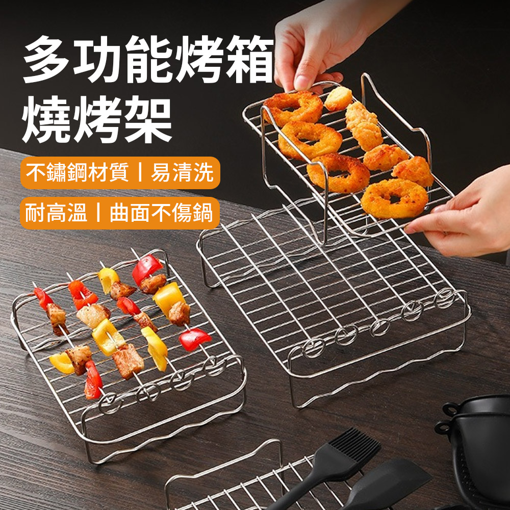BOLE 3件套 不鏽鋼料理燒烤架 烤箱空氣炸鍋烤串架 瀝油烤架 烤箱烤網 蒸架 炸物架 蒸網 烤肉架 網架