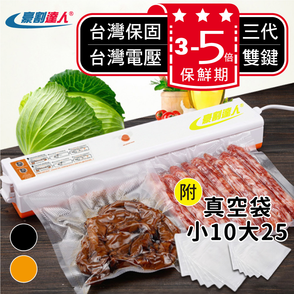 商品組合:三代特惠1組:真空包裝機x1 + SGS食物保鮮真空包裝真空袋(20*25cm)X10入+(25*30cm)X25入,共35入