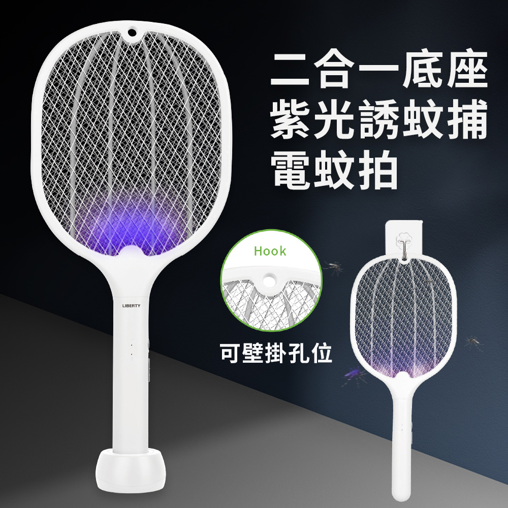 LIBERTY 利百代 二合一底座紫光誘蚊捕蚊拍 LY-8009ZA 電蚊拍 捕蚊燈 大容量鋰電池 三層防護網 紫光燈誘蚊