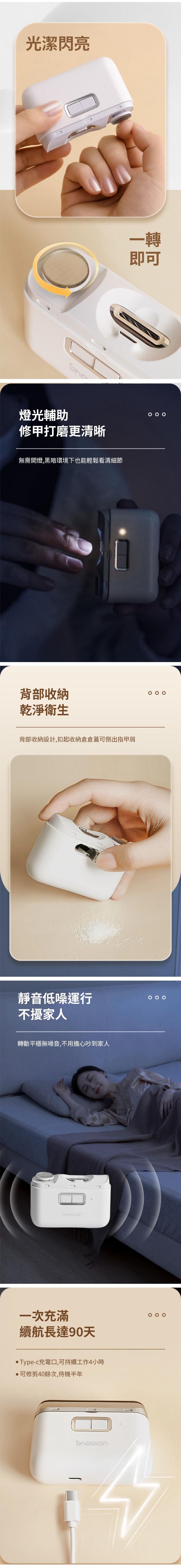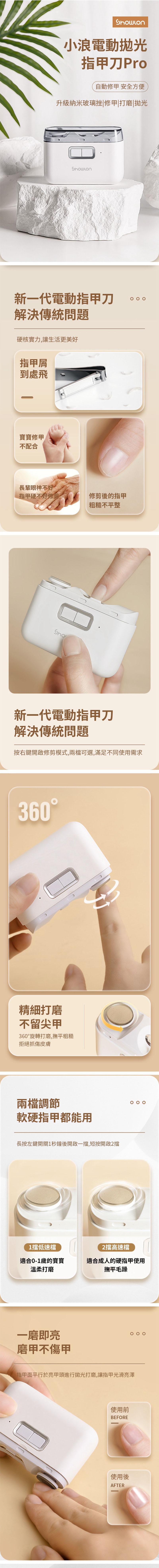 品名:小浪電動指甲刀Pro 顏色:白 型號:D604 電池容量:500mAh 額定輸入:5V-0.3A 充電接口:Type-C 產品重量:120g 產品尺寸:81*56.3*30mm