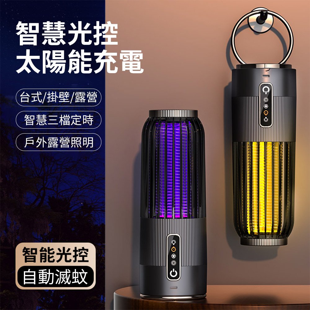 Ouboo USB充電太陽能兩用捕蚊燈 攜帶式戶外露營照明滅蚊燈 光觸媒捕蚊燈(滅蚊燈 驅蚊燈 捕蚊燈 滅蚊器)