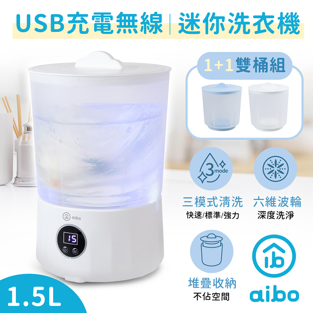 aibo 洗淨三模式 USB充電無線迷你洗衣機(雙桶組)