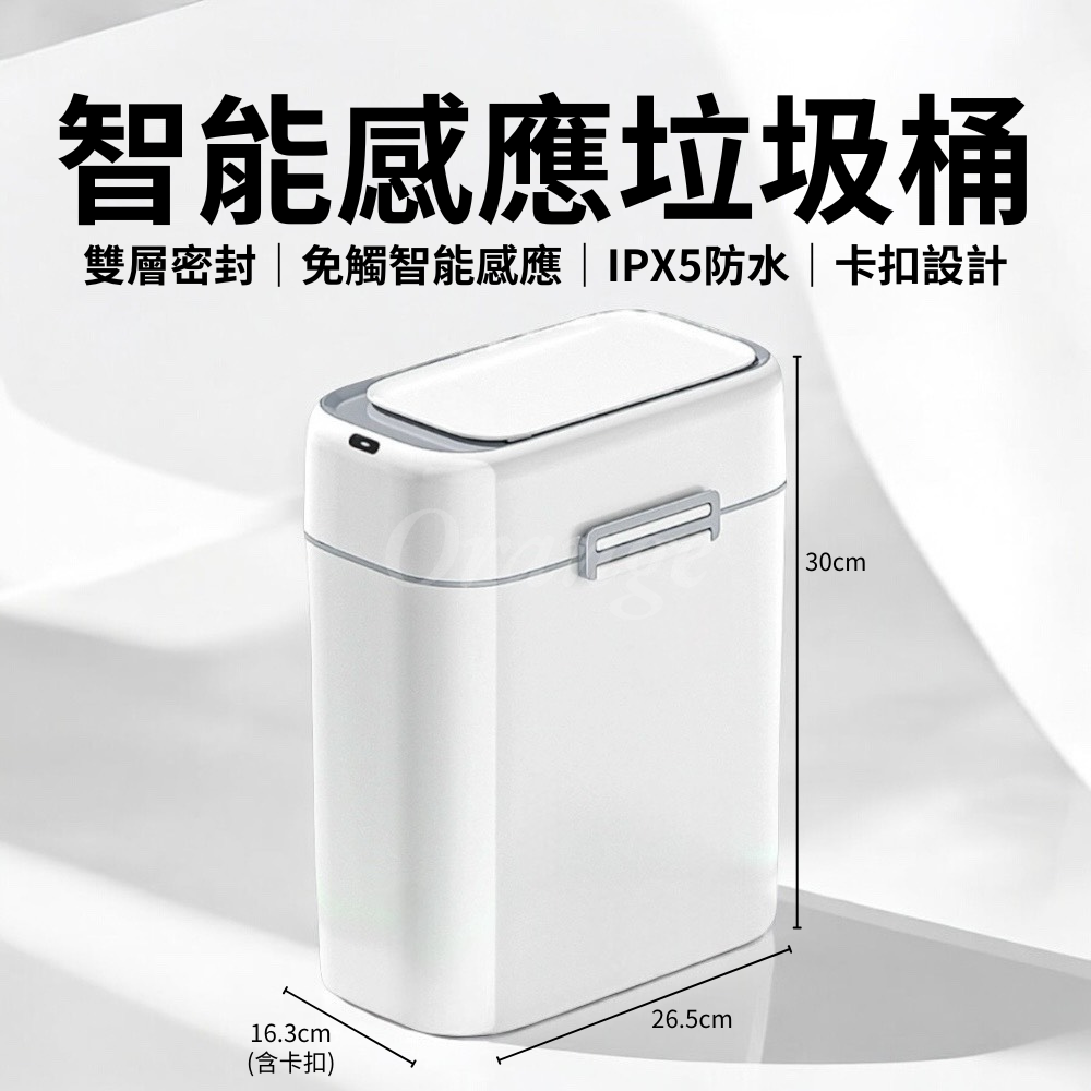 - 窄型桶寬僅16.3公分 斜角設計自動感應開蓋