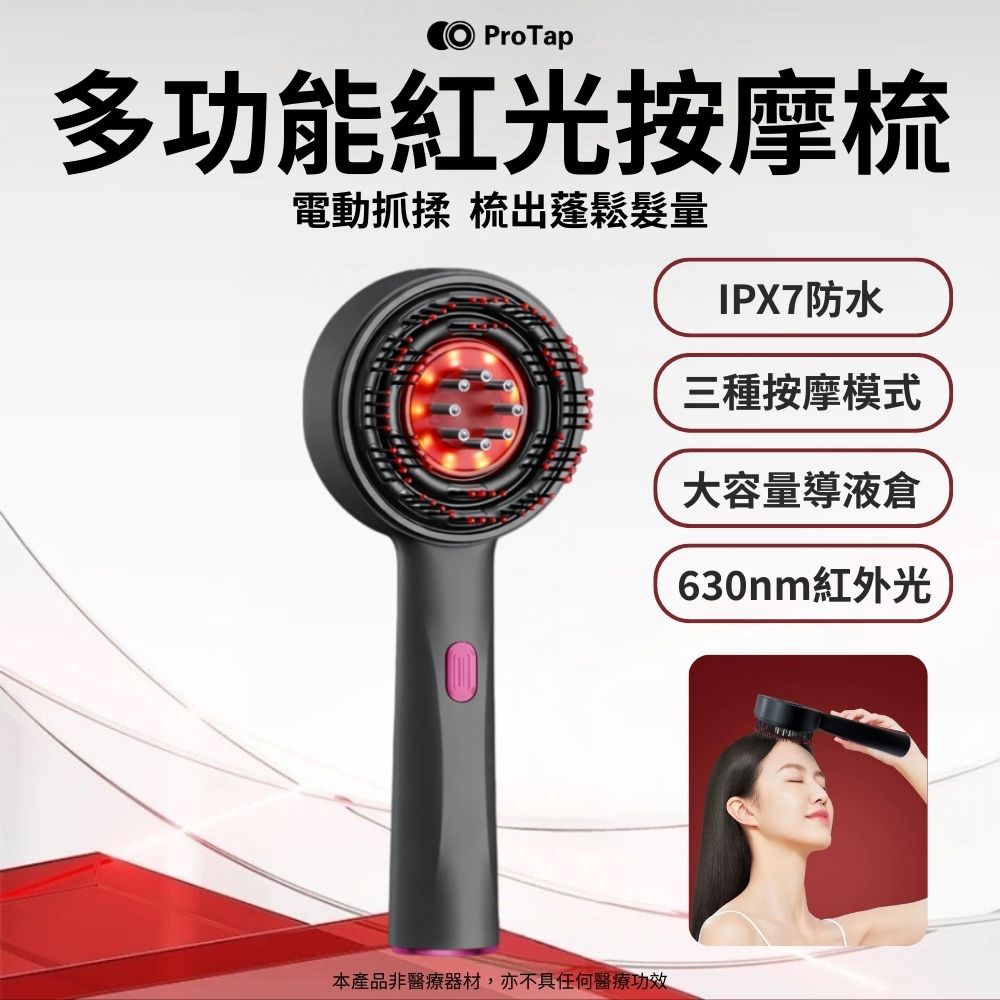 ProTap多功能紅光按摩梳 電動按摩梳 電動抓揉 護髮梳 長髮梳 梳子 髮梳 護理儀 紅光梳