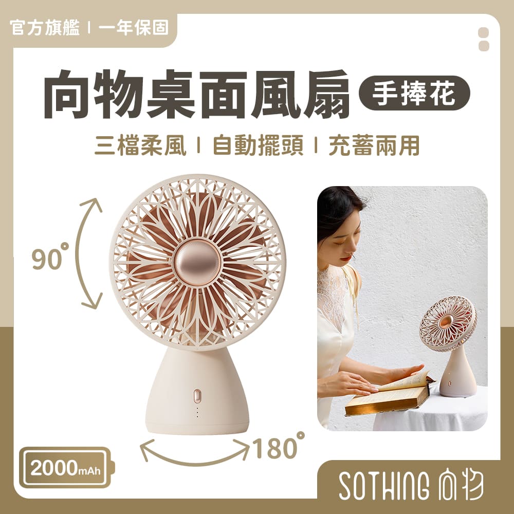 SOTHING向物 桌面風扇-手捧花 靜音風扇 辦公室風扇 電風扇 小電扇 桌扇 USB風扇 充電電風扇 手持風扇