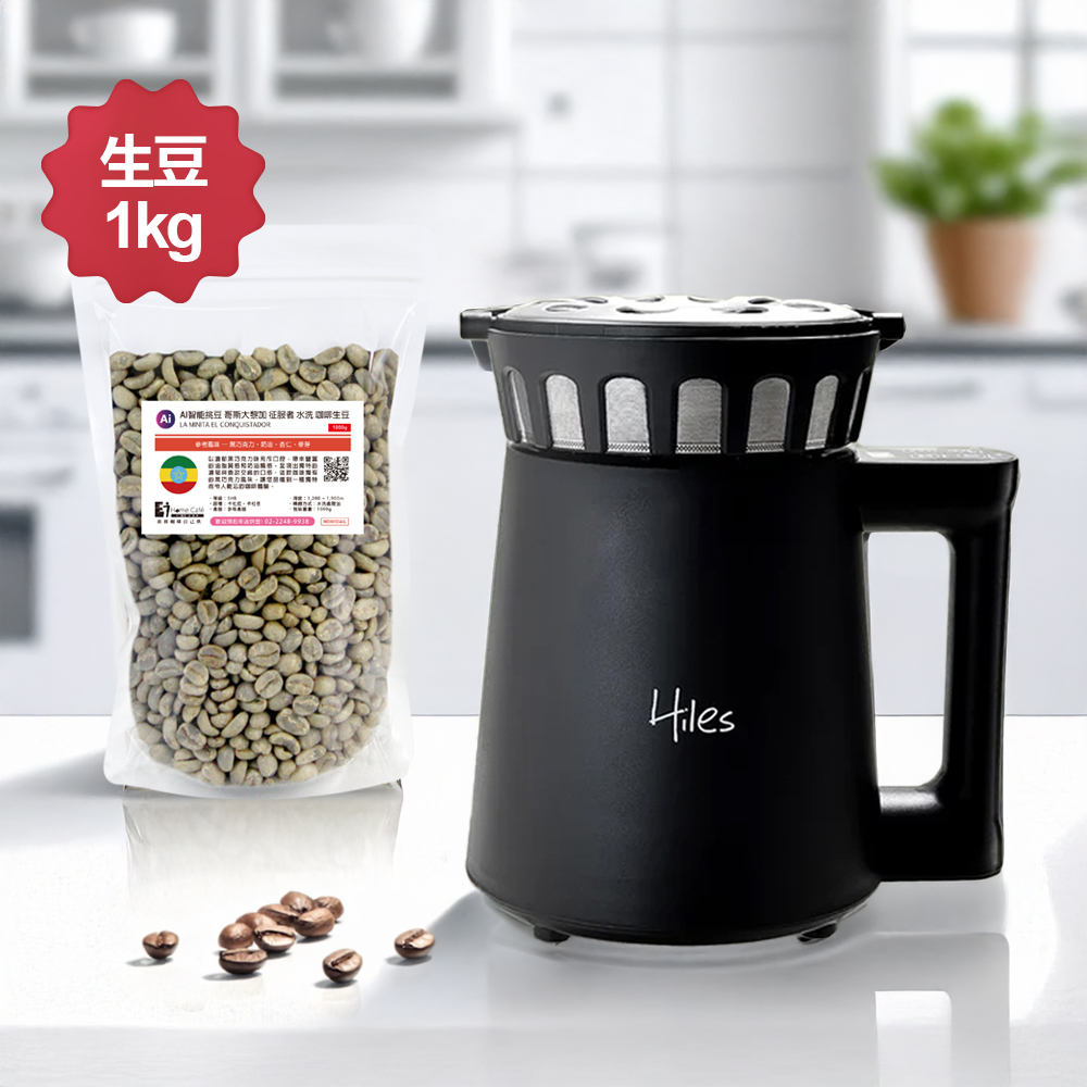 - Hiles 第二代氣旋熱風家用烘豆機(溫度/時間可調式) HE-HRT2 含1公斤阿拉比卡咖啡生豆