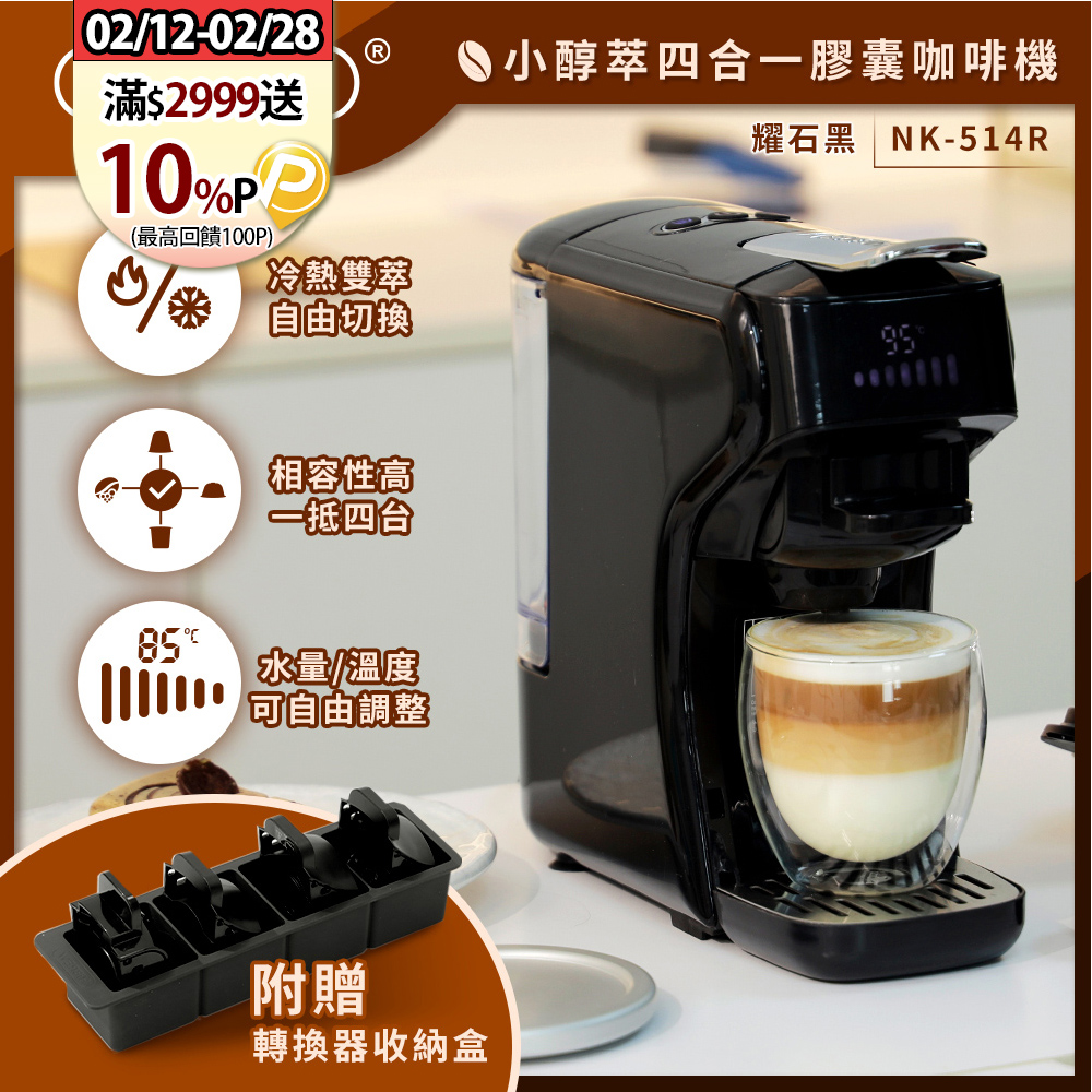 HiBREW 冷熱雙萃四合一膠囊咖啡機NK-514R 曜石黑 NK-514R-BK(適用K-CUP/NS/多趣酷思膠囊/義式填粉) 送收納盒