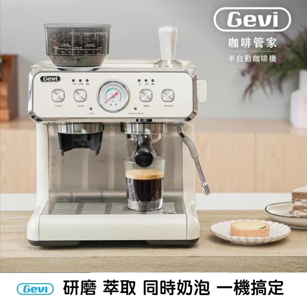 Gevi 咖啡管家 三合一 半自動義式咖啡機 雙加熱塊 研磨 萃取 奶泡(燕麥白)