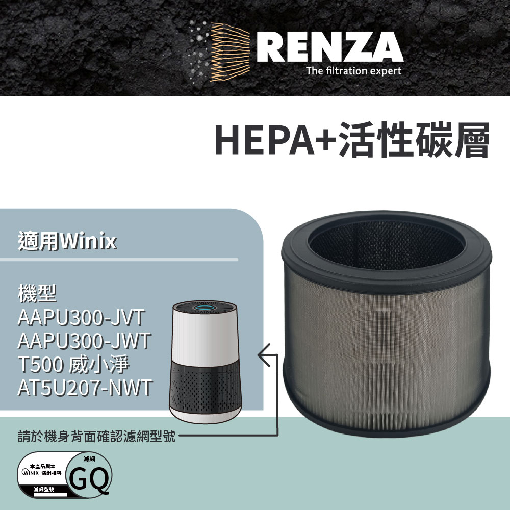 RENZA 適用韓國 Winix AAPU300-JVT JWT T500 威小淨 空氣清淨機 可替換GQ HEPA活性碳濾網 濾芯