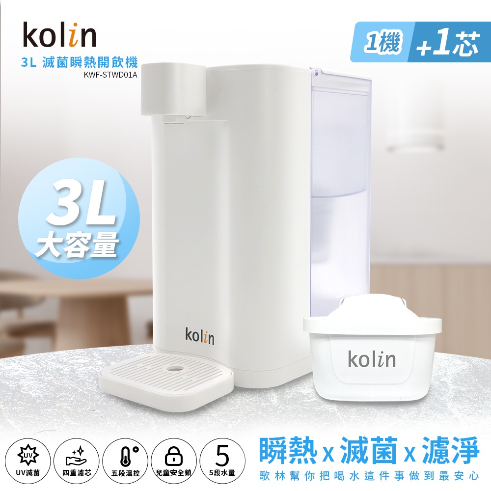 【商品名稱】Kolin 歌林 3L UVC滅菌瞬熱開飲機(內含一芯)