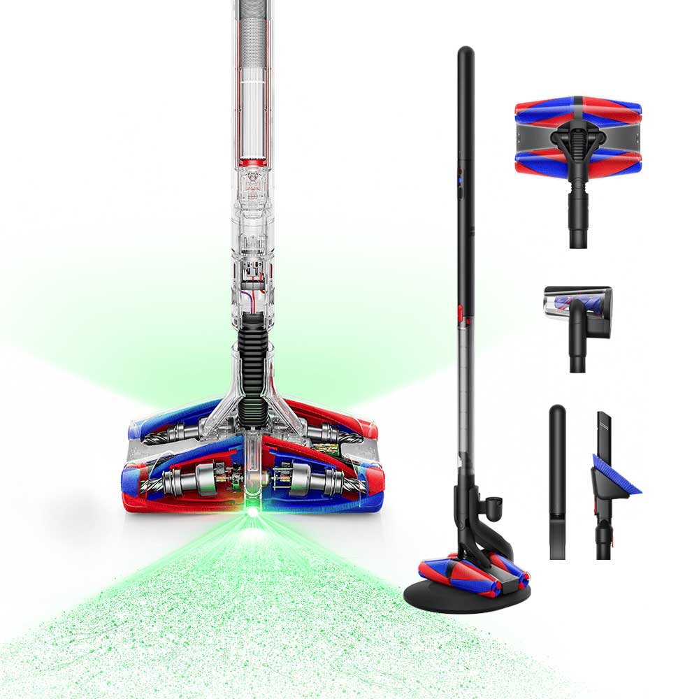 - 雙主滾刷超強動力:兩個反向旋轉的雙主滾刷