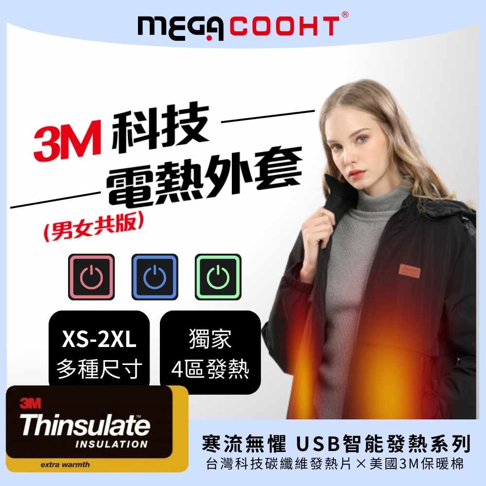 【MEGA COOHT】3M科技發熱外套 保暖外套 電熱外套 男女共版附行動電源 可機洗(電熱外套 暖暖包 加熱外套)