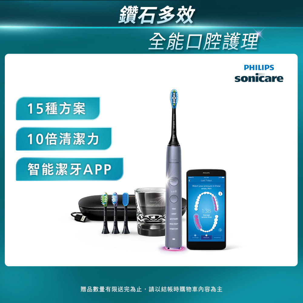 PHILIPS 飛利浦 官方直營 Sonicare Smart 鑽石極淨智能音波震動牙刷HX9924/42 (絢光銀)(電動牙刷)
