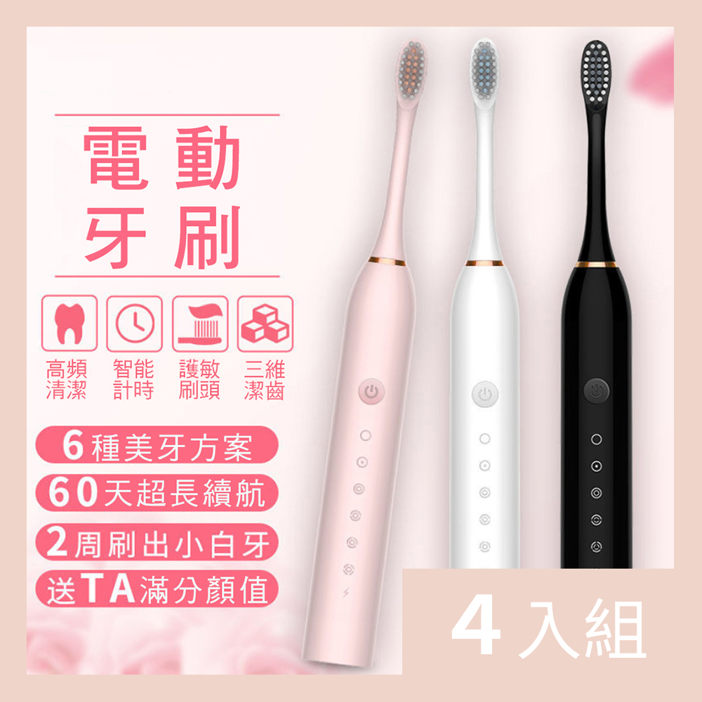 CS22 充電式六檔電動牙刷 附10支牙刷頭+掛架-4入組