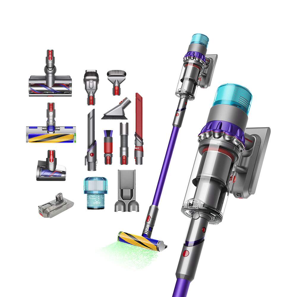 內附:Fluffy Optic智慧光學偵測吸頭/智慧變速吸頭/無纏結錐型吸頭/二合一吸頭/內建除塵及隙縫吸頭/硬漬吸頭/迷你軟毛吸頭/伸縮軟管/無痕軟毛塵刷/斜角隙縫吸頭/可拆式硬管/充電器/充電壁掛底座