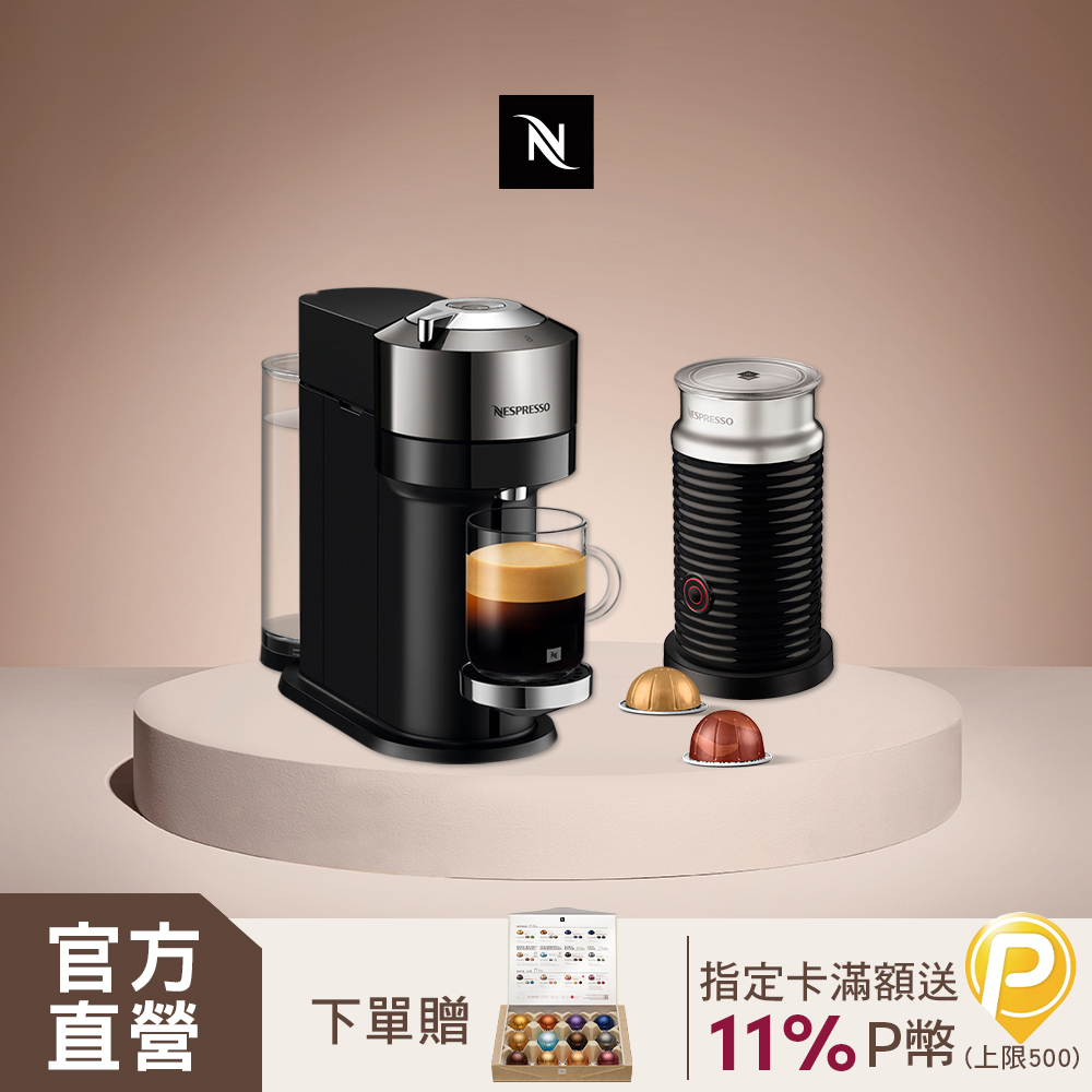 Nespresso 【官方直營】臻選厚萃 Vertuo Next 尊爵款 膠囊咖啡機 奶泡機組合 (可選色)