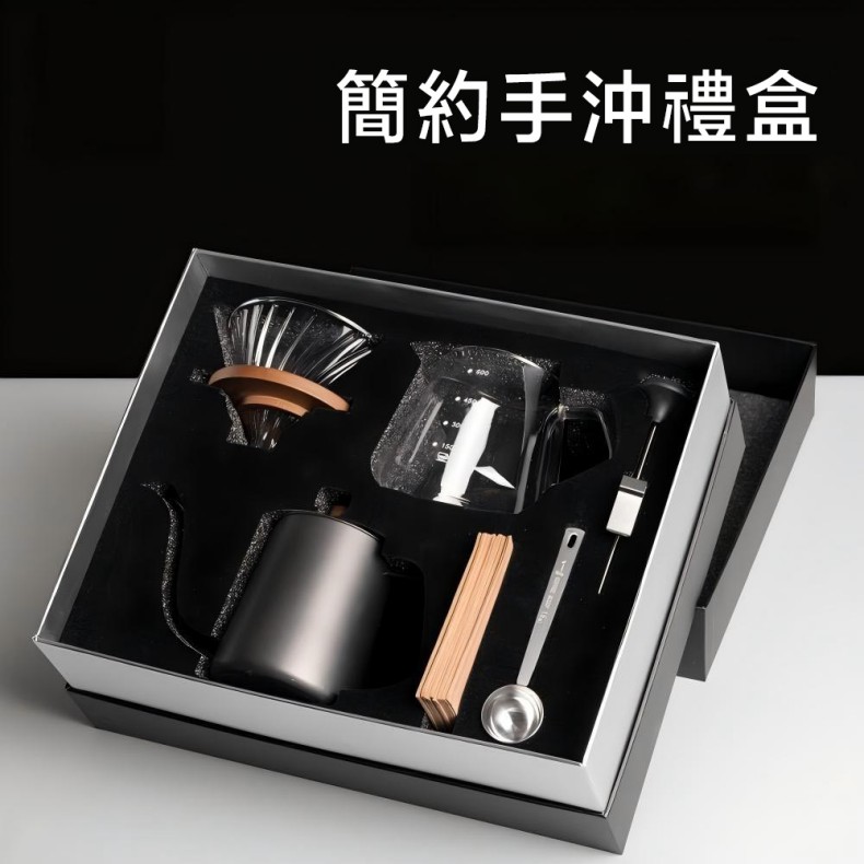 包裝清單:濾杯*1+深色竹托*1+550ml分享壺*1+600ml手沖壺*1+濾紙*40+不鏽鋼量勺*1+溫度計*1+禮盒*1