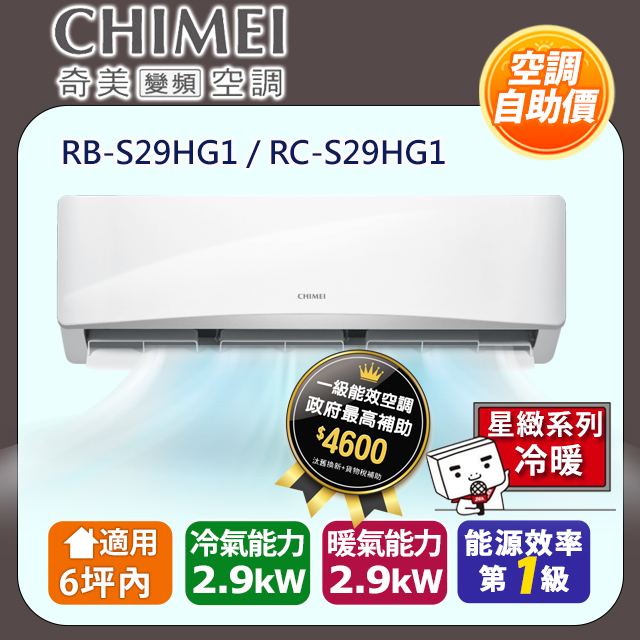 CHIMEI 奇美 6坪內一級能效變頻冷暖分離式空調室內機-星緻系列 RB-S29HG1