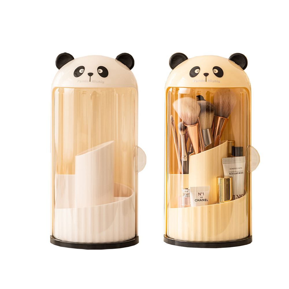MUAN 360度旋轉防塵刷具筒 分格收納化妝品收納盒 桌面收納 化妝刷收納筒
