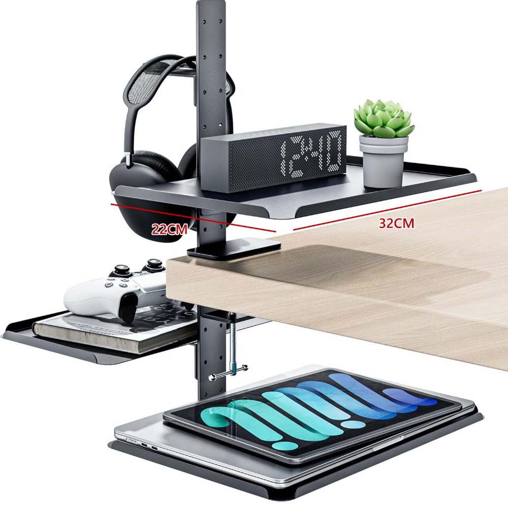 MGSHOP 免打孔 辦公桌書桌收納盤 桌邊三層收納(桌上收納盤架 文具收納)