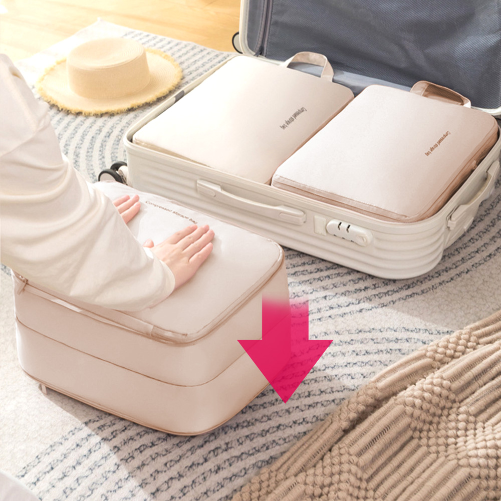 雙層雙拉鍊旅行衣物行李箱壓缩袋超大號-燕麥色2入