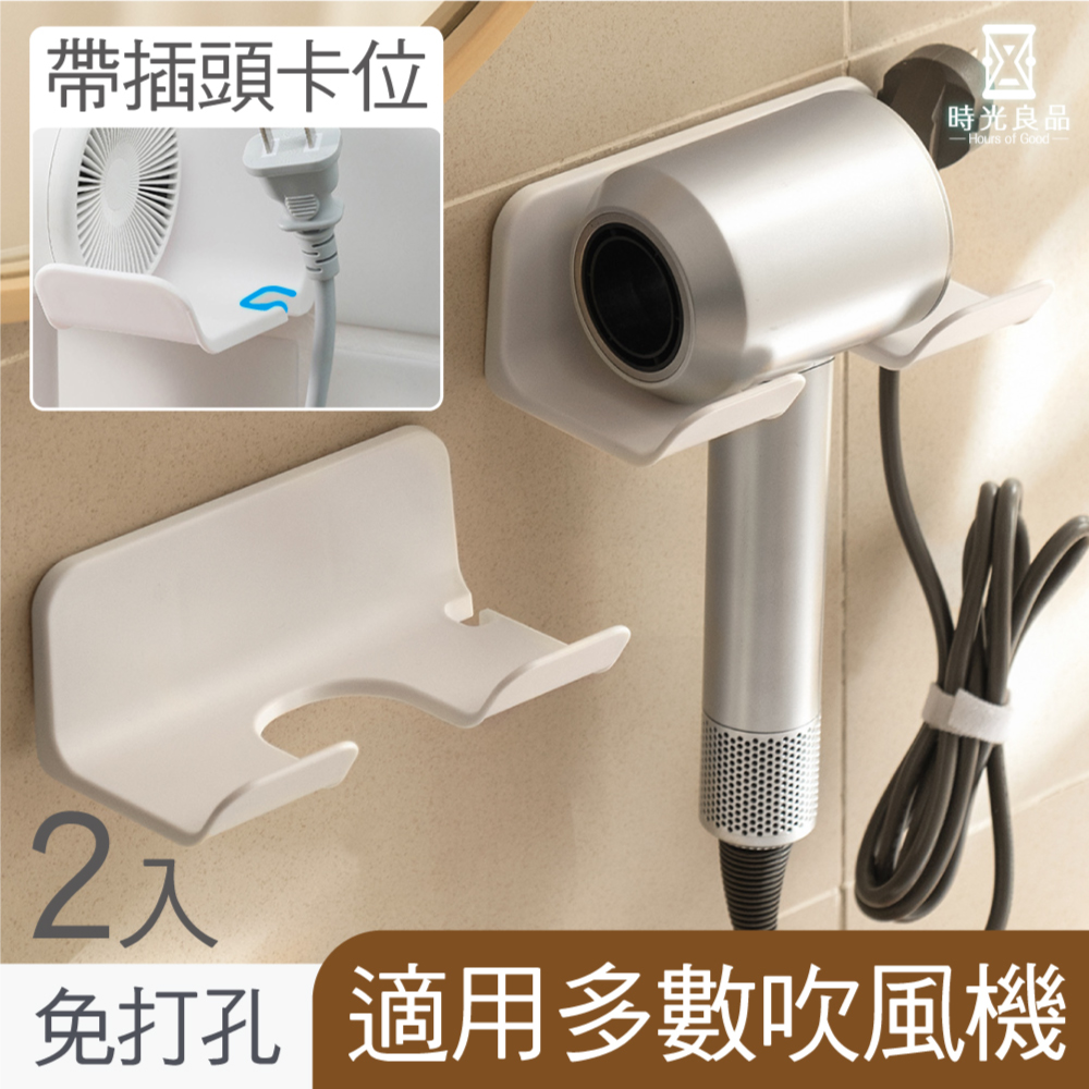 時光良品 高質感極簡☆免打孔壁掛簡約吹風機置物架收納架-2入(無印免釘貼壁掛浴室掛架 插頭電線收納勾)