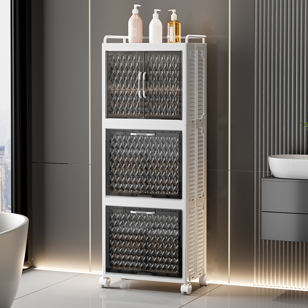 歐式摺疊分層髒衣籃收納櫃附輪-3層