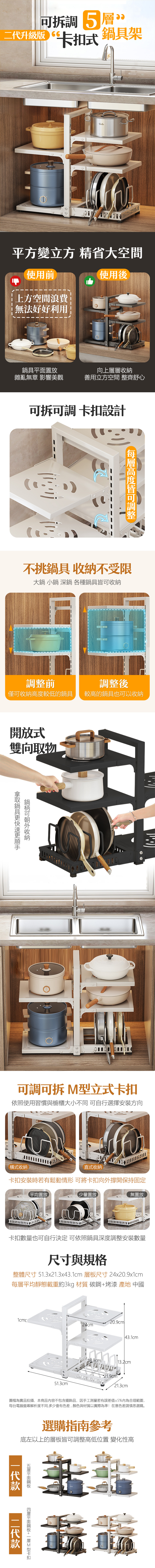 可調式五層雙向鍋具架(二代)/下水槽架/檯面收納架/菜架/廚房架/書架/桌上架/鍋蓋架