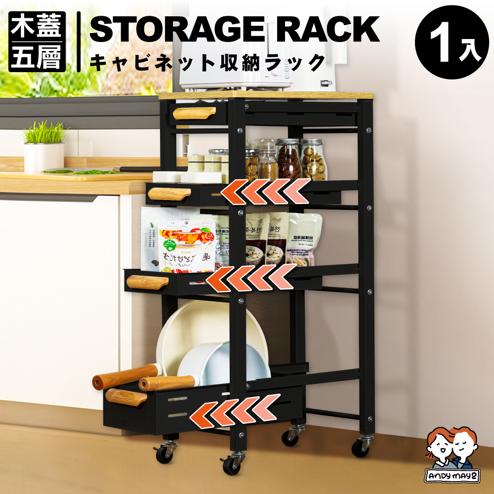 ANDYMAY2 原仕家抽拉籃廚房置物架-木蓋五層(1入)