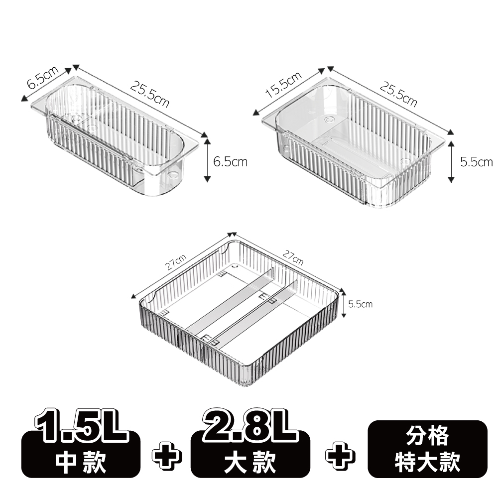 - 三種規格可任意組合搭配,讓抽屜整潔有序 可自由伸縮,有效利用空間