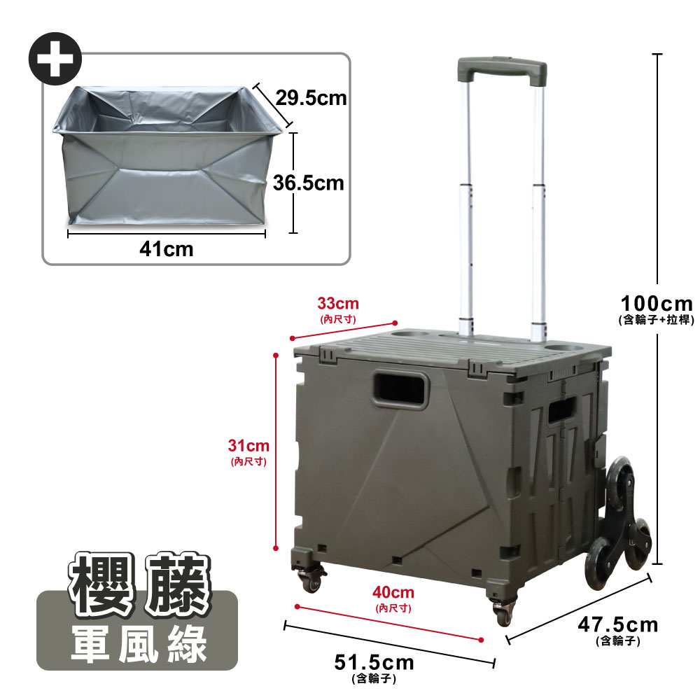 展開尺寸:長51.5 x 寬47.5 x 高100CM±5%(含爬梯輪、展開拉桿高)